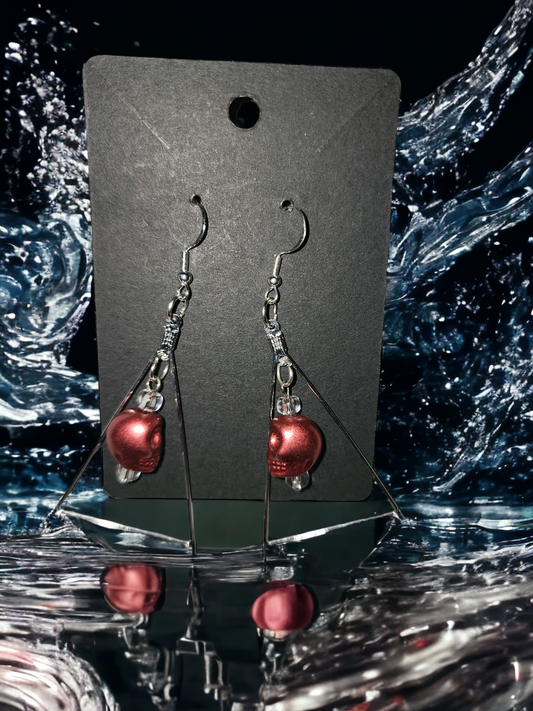 Red skull siver earrings