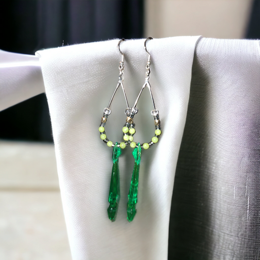 Triangle with died green shell 2 inch earrings