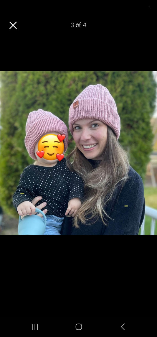 Handmade knitted Toques Mama/Dada & mini set of 2